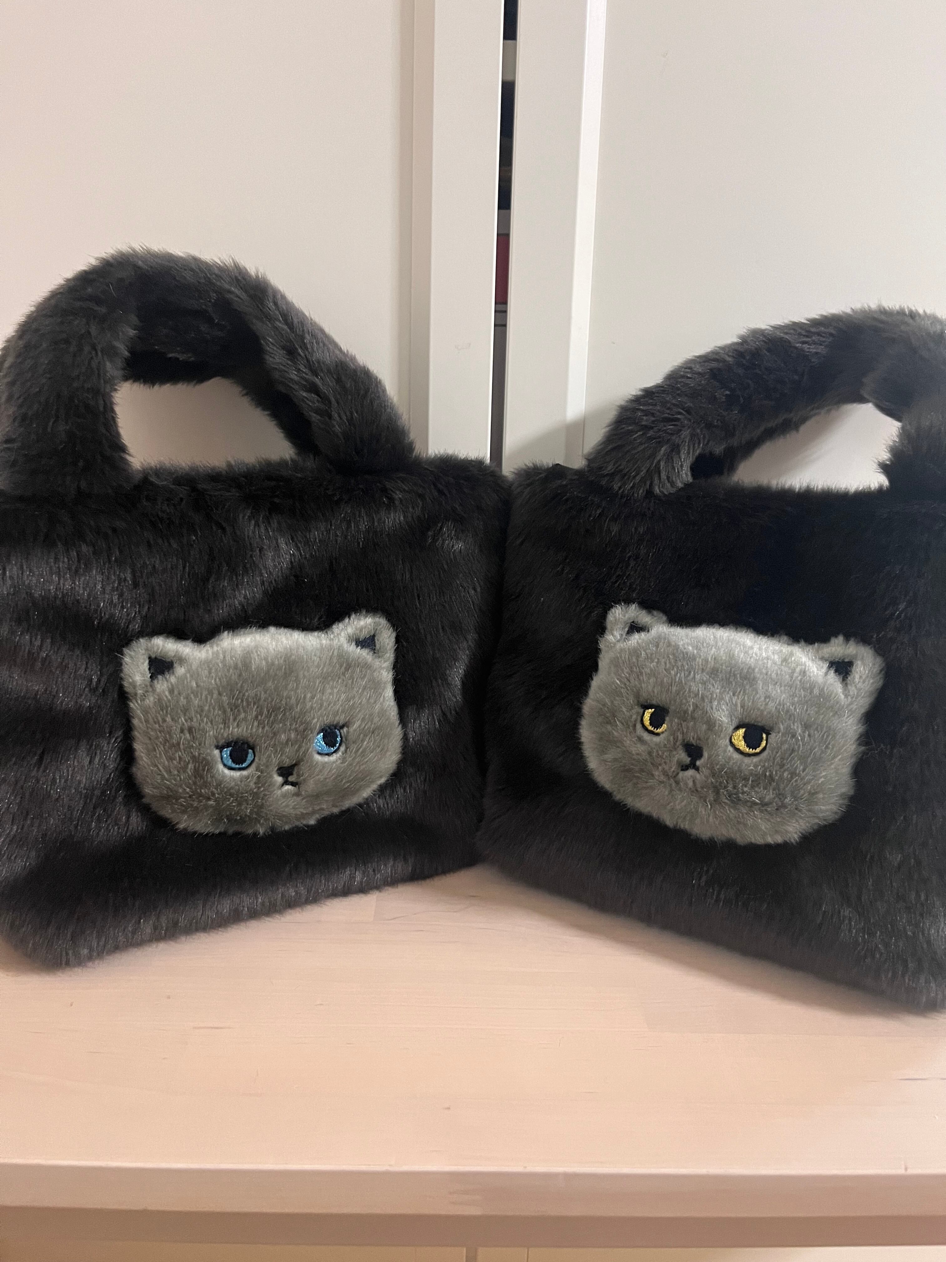 グレーゴールドアイ猫xチャコールグレー 高野口産エコファートートバッグ