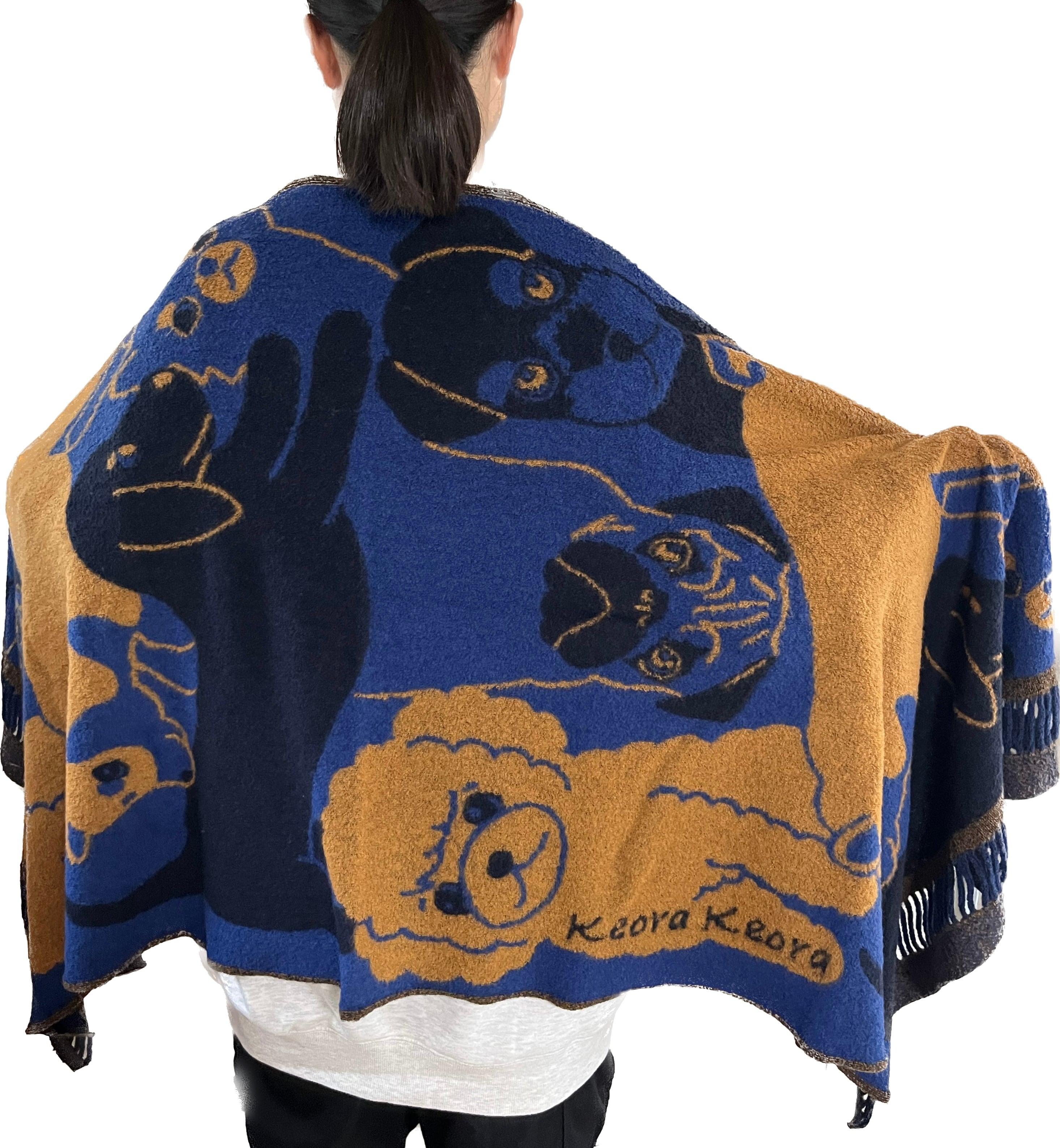 柔らかくて暖かい、山形県米沢織のストールができました!今年の新作は犬いっぱいの楽しい柄です。